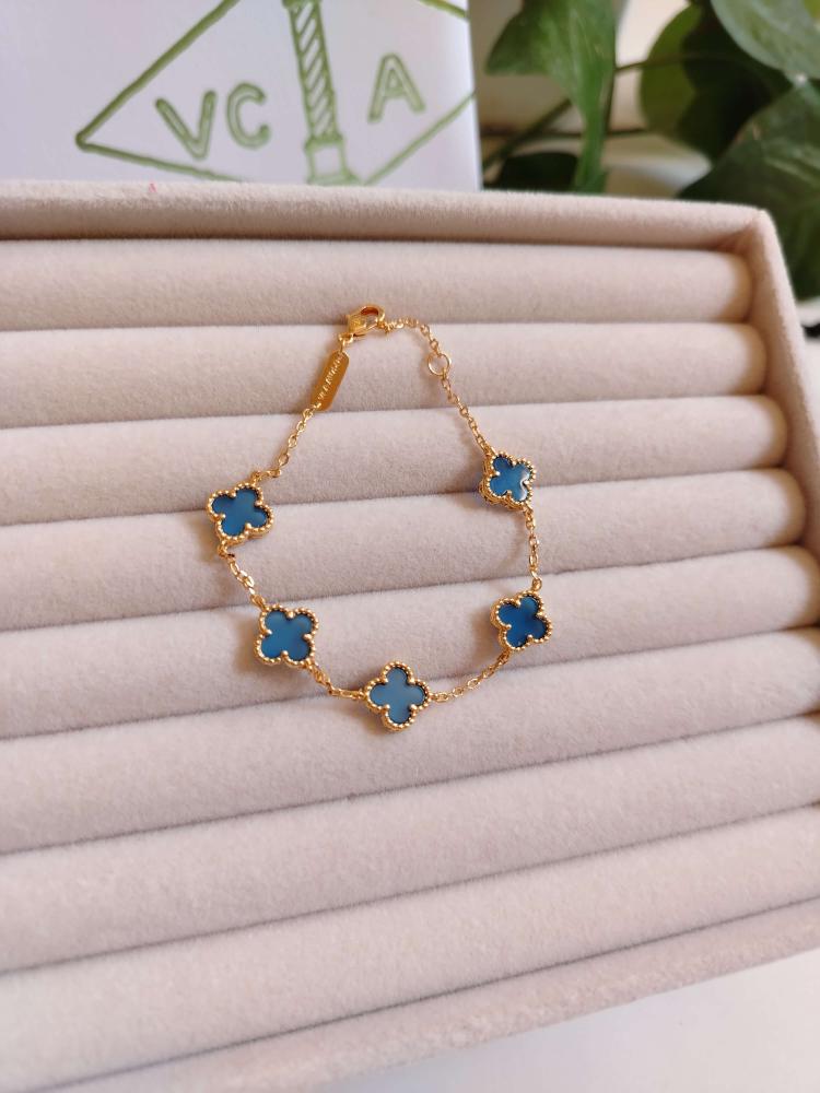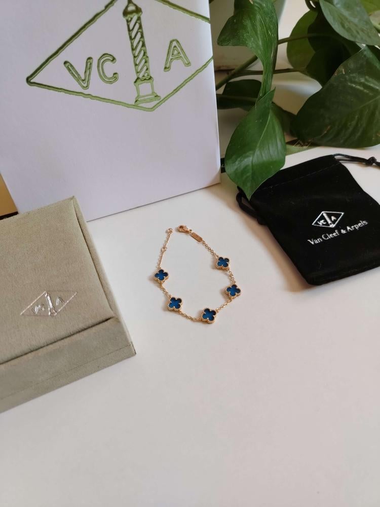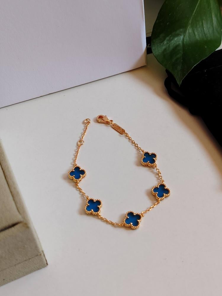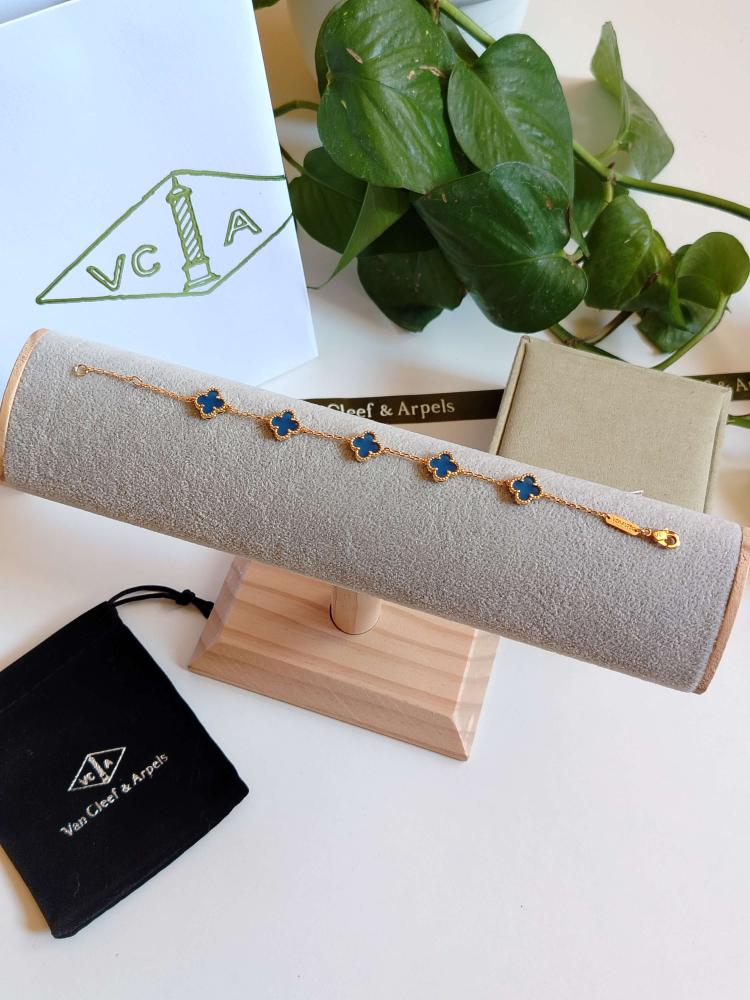 اسوارة فان كليف ازرق بسلسال ذهبي ميني