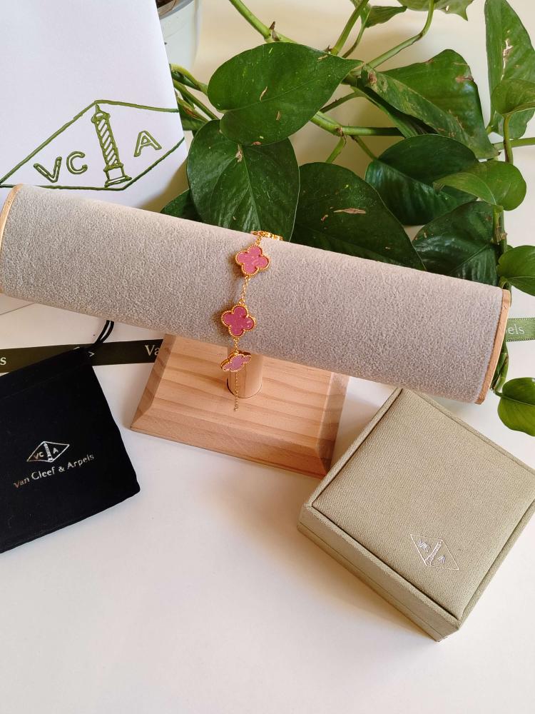 اسوارة فان كليف لون زهري غامق منقط بسلسال ذهبي